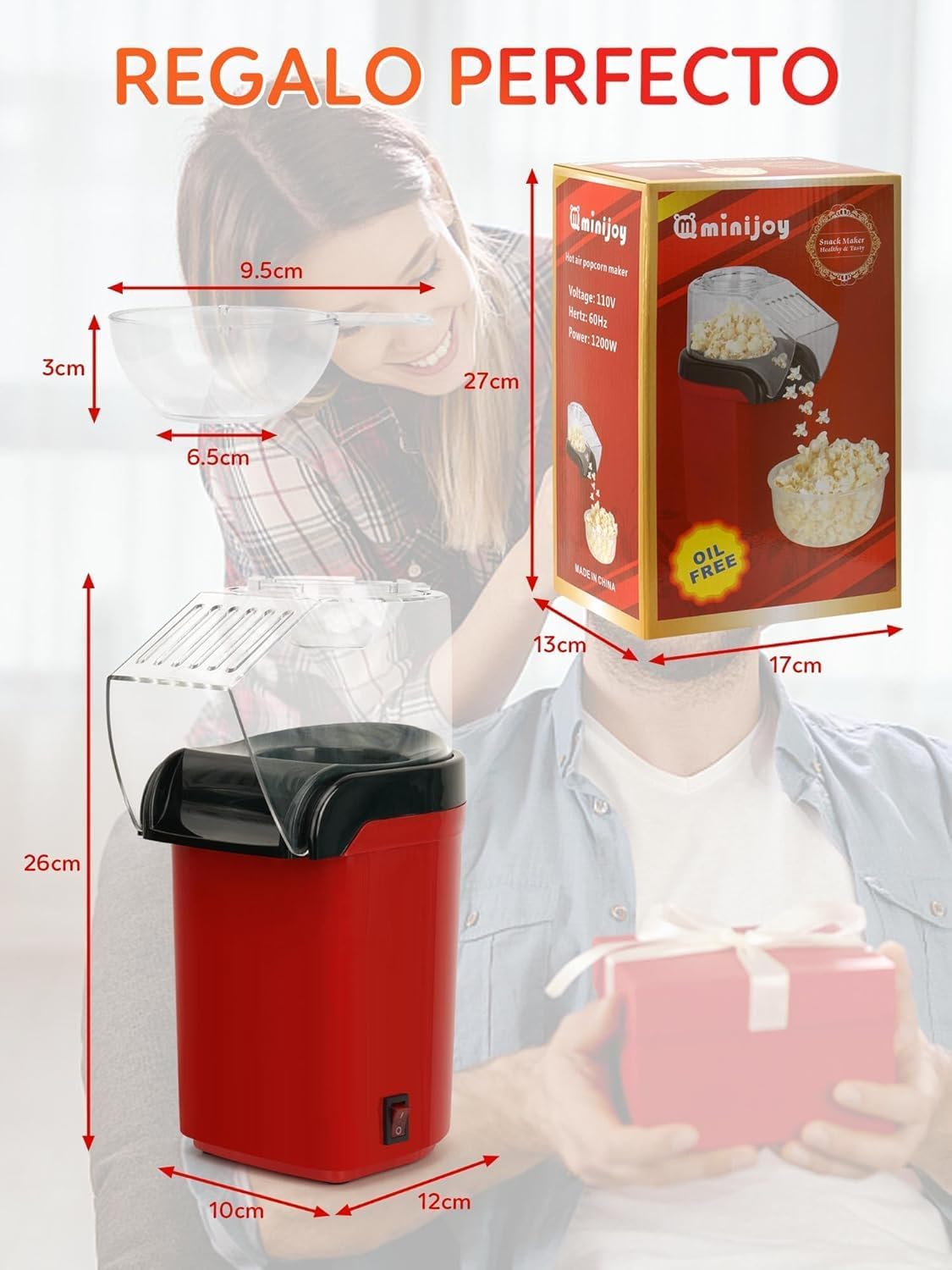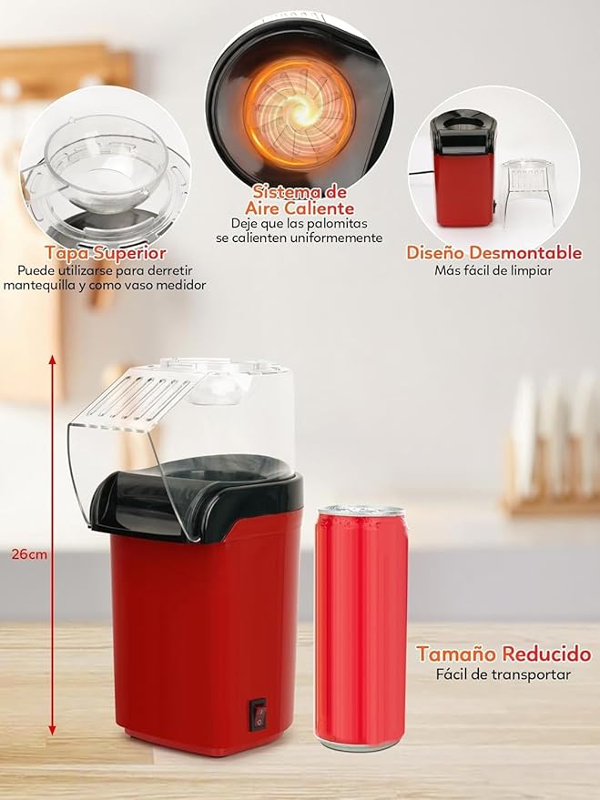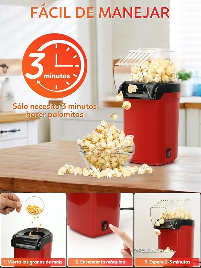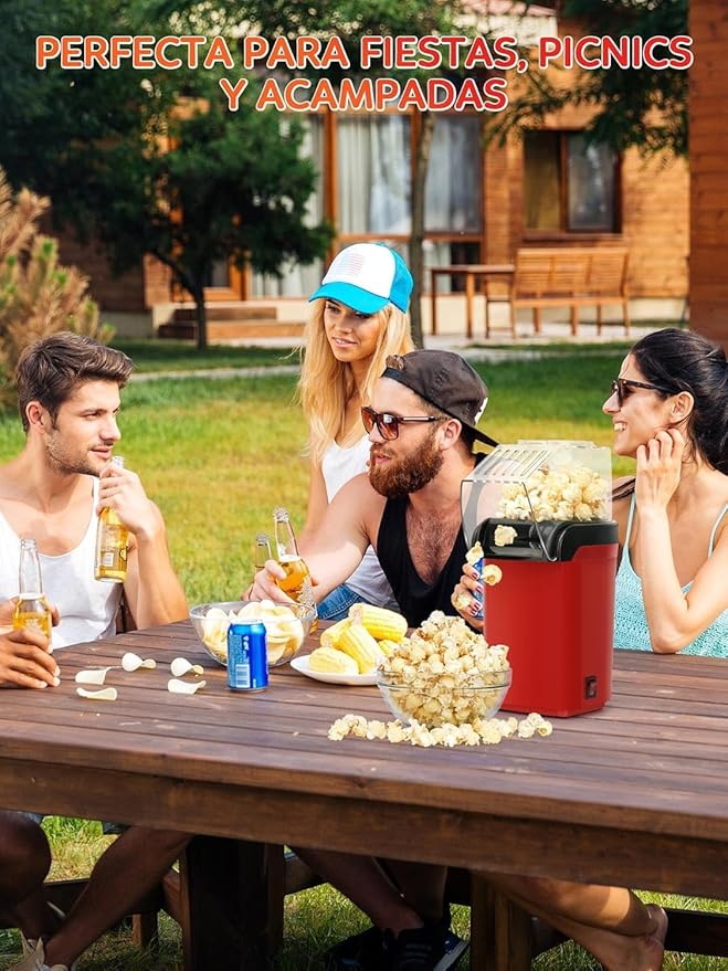 【SIN ACEITE Y MÁS SALUDABLE】La palomera de aire utiliza el principio de aire caliente para hacer palomitas frescas de forma rápida y eficiente sin necesidad de aceite, lo que es más saludable para su cuerpo. Perfecto para fiestas, cenas familiares o noches de cita.