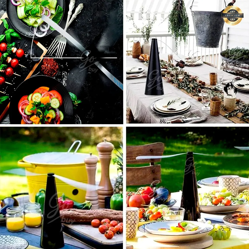 Mantén tus alimentos y bebidas a salvo de las moscas con este ventilador de mesa sin químicos, que utiliza un enfoque natural para alejar las plagas. Di adiós a los molestos insectos y disfruta de tus comidas en paz mientras socializas con amigos.